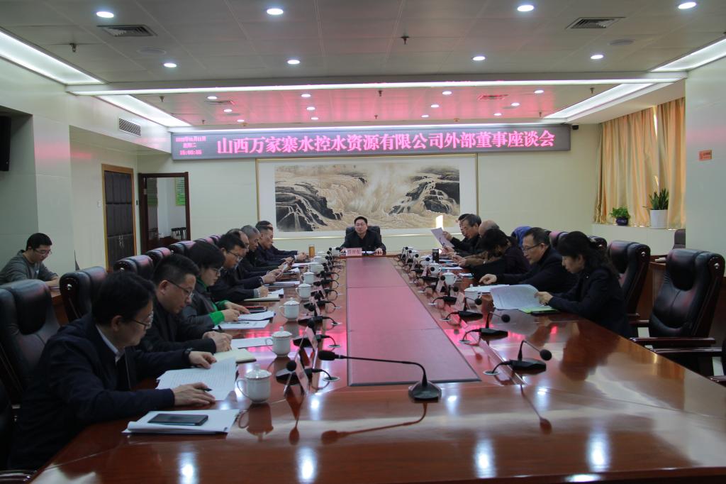 1月11日,山西万家寨水控水资源有限公司召开外部董事座谈会。水控集团副总经理,水资源公司总经理蔡开东主持会议,公司党委委员、专职外部董事、监事及相关部门负责人参加。