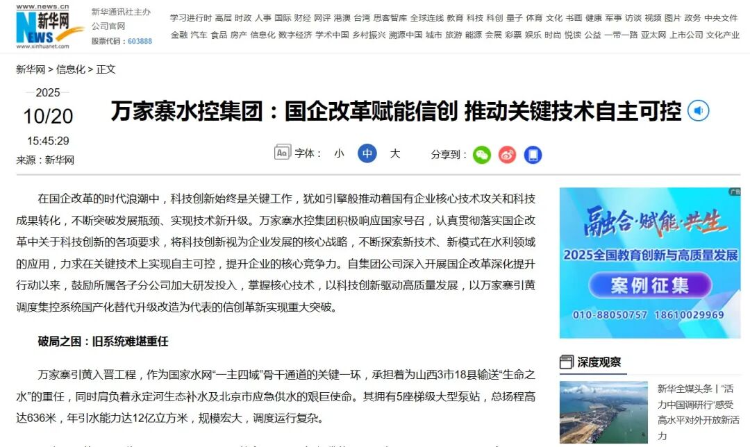 近日,新华网、科技日报、中国水利报、工人日报等多个国家级媒体将镜头对准万家寨水控集团,聚焦国企改革信创工作,通过多维度、多篇幅、深层次报道,重点展现企业将科技创新作为高质量发展的核心战略,持续提升核心竞争力的实践成效。