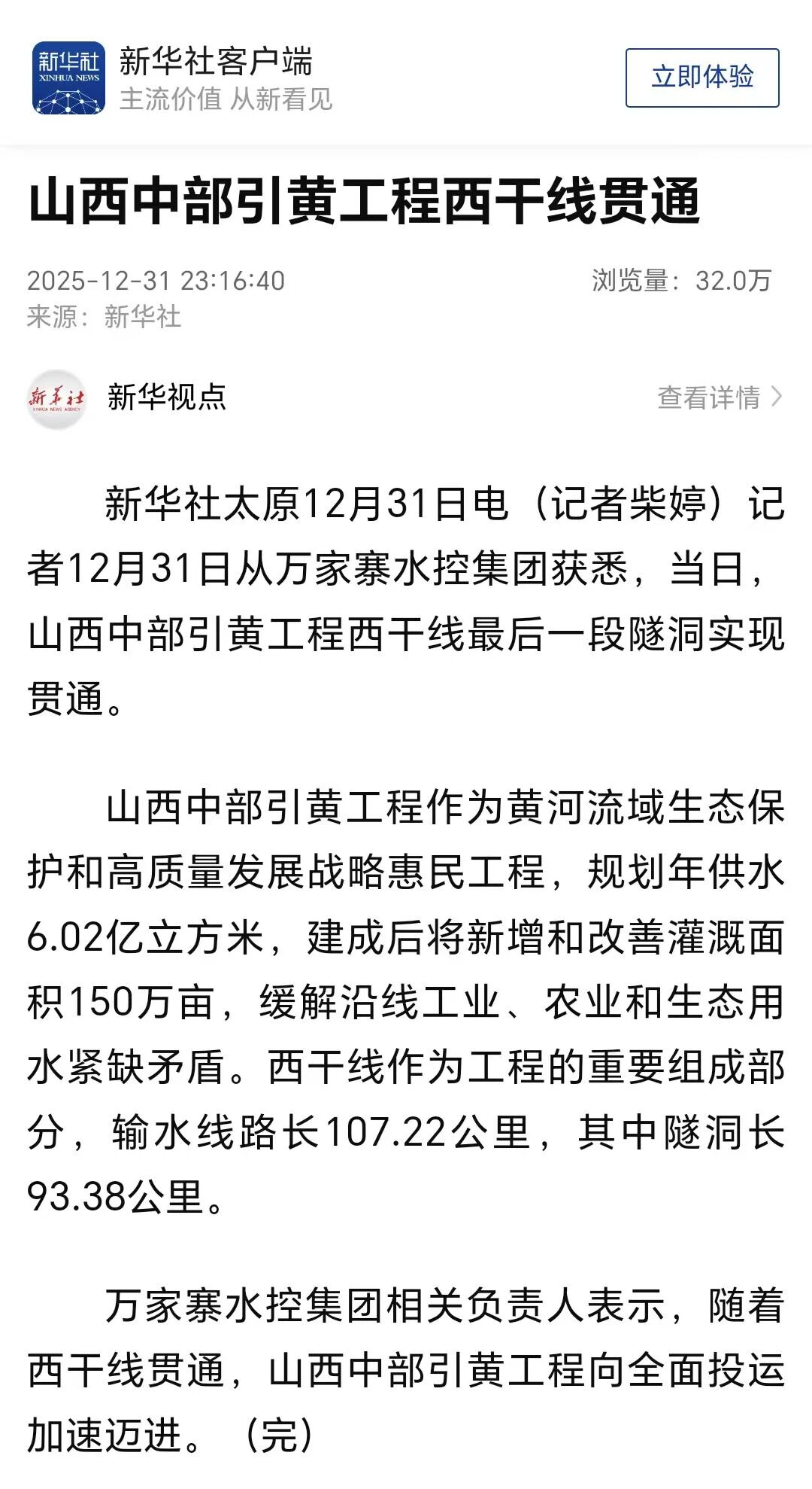 连日来,新华社、中央电视台、山西省人民政府网、山西日报、山西电视台等主流媒体对山西中部引黄工程西干线贯通进行了报道,受到社会广泛关注。
