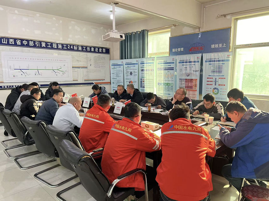 ▲在施工24标项目部召开超前预注浆堵水工艺优化专题会