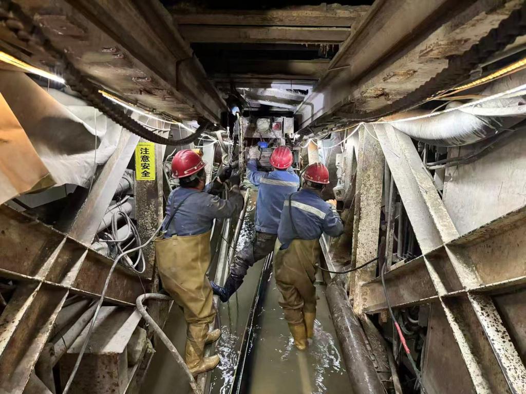 经过4小时紧张奋战,凌晨7点30分,出水孔局部封堵完成,险情初步得到控制。但抢险队员们丝毫不敢懈怠,在齐腰深的泥泞中持续加固封堵、加大抽排力度。饿了就啃口干粮,困了就在现场短暂休息,始终坚守岗位。9月5日13点,历经33小时连续奋战,洞内渗涌水终于被抽排至主洞底板,工程恢复施工条件。此次抢险不仅成功抢回工期主动权,更彰显了党员联合先锋队及全体参建者“敢打硬仗、善打硬仗”的过硬作风。