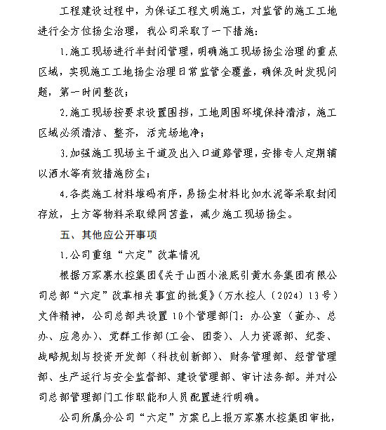 山西汾河一坝管理有限公司2024年第一季度信息公开...